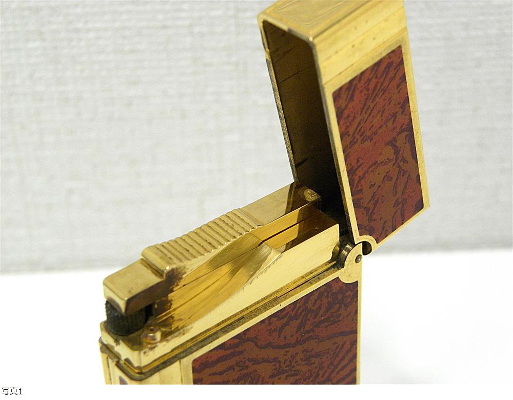 喫煙グッズ祭 デュポン ガスライター ギャッツビー サイドローラー マーブル ゴールドカラー ブラウン S.T.Dupont 中古品 箱なし 收藏