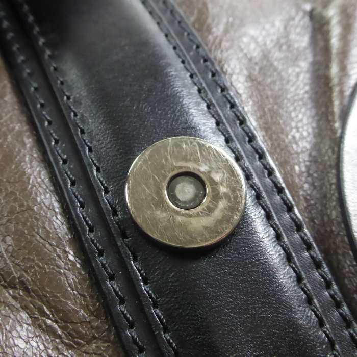 | レザー全体の所々にスレや小キズ、角スレ、金具にスレキズ、ショルダーに毛羽立ちなどが見受けられますが、大きな傷みはなくまだまだお使い頂けるお品です。 |