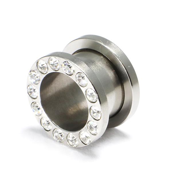 フレッシュ トンネル ラインストーン仕様 5/32インチ(12mm) サージカルステンレス316L ボディーピアス ジュエル付 イヤーロブ 5/32inch