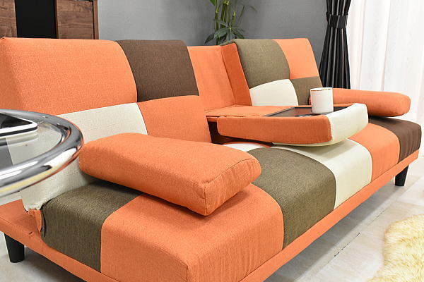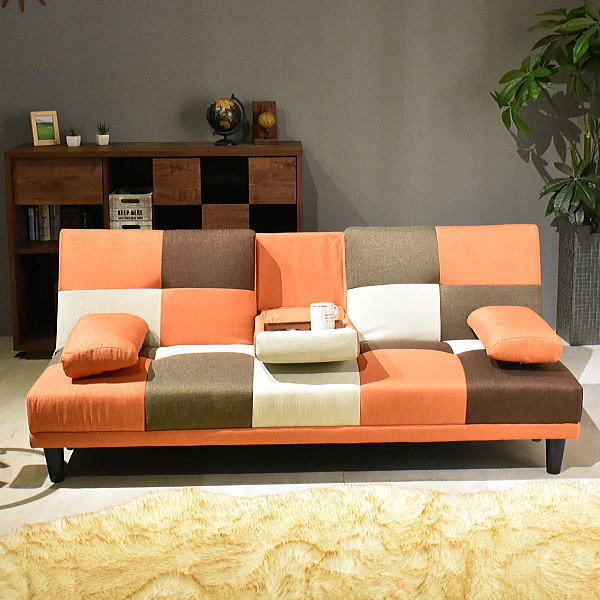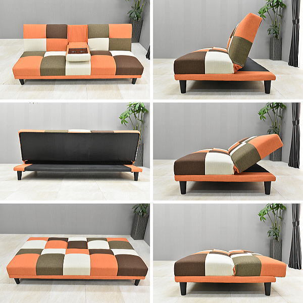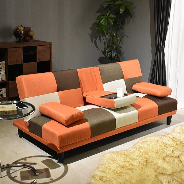 地域限定送料無料 新品 パッチワークデザイン テーブル付きリクライニング ソファーベッド 布製3人掛けファブリック3P家具:NW44-11E-ZT-KC 收藏