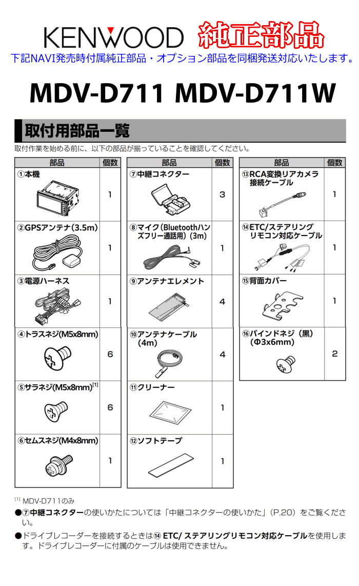 ケンウッド 純正 KENWOOD MDV-D711W MDV-D711 Bluetooth ハンズフリー 通話用 マイク (JM10 收藏