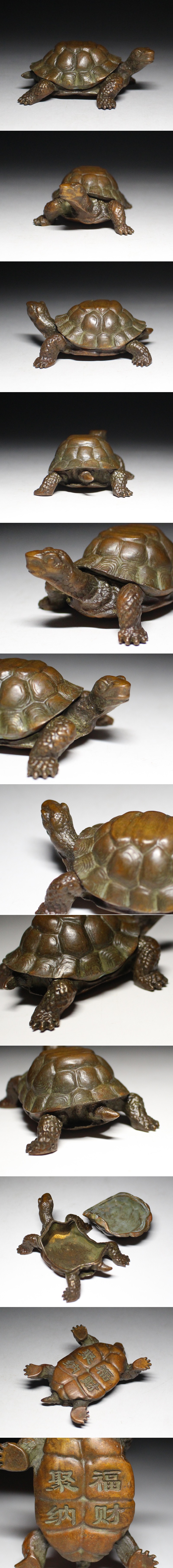 | ■古銅■聚福納財・亀・かめ・香炉・置物・小物入・細密細工・煎茶飾り・盆景・香道具・f4114 h | ||||||||||||||||||||