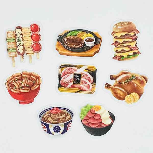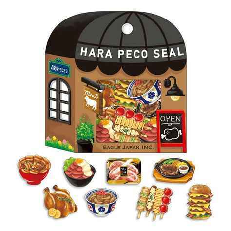 HARAPECO SEAL はらぺこ シール (お肉) ハラペコ フレークシール デコシール ステッカー ハンバーグ ステーキ 牛丼 焼き鳥 肉 收藏