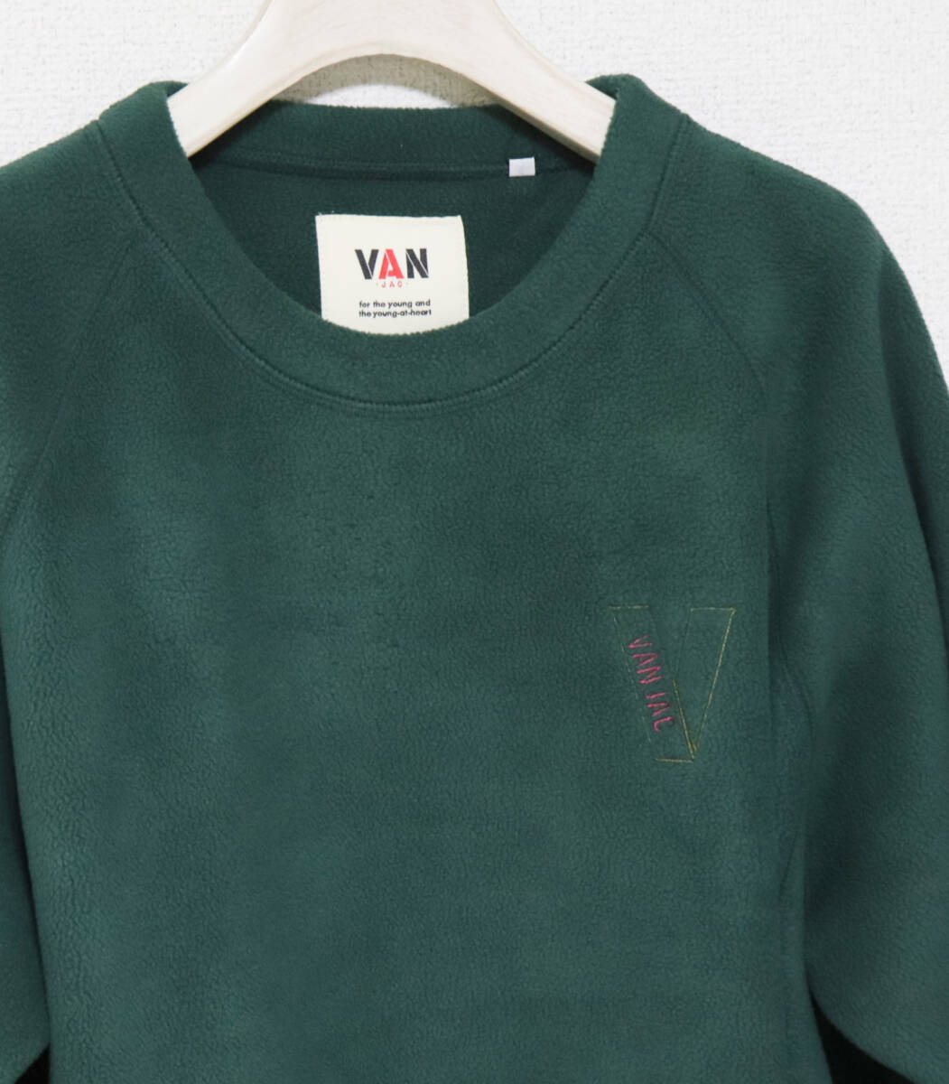 | 新品タグ付き【VAN JAC ヴァンジャケット】ロゴ入り 暖かフリーストレーナー スウェット 裾ドローコード付き 緑 M v6070-6001 |
