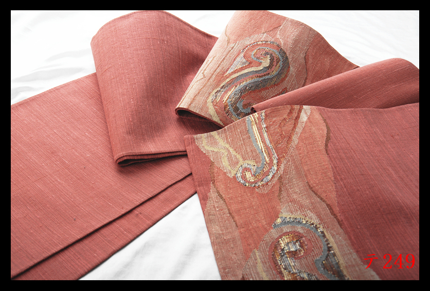 蔵【テ249】西陣逸品 紬 桃色地 気品豊かに 正絹純金糸太鼓柄高級美術袋帯 ◇検◇簪着物名古屋帯和装小物帯締め 收藏