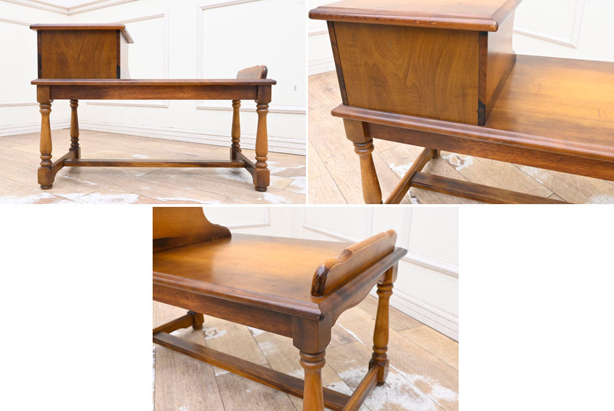 CW04 高級家具メーカー カリモク 人気シリーズ コロニアル テレフォンチェア 電話台 椅子 ベンチ 飾台 オブジェ 收藏