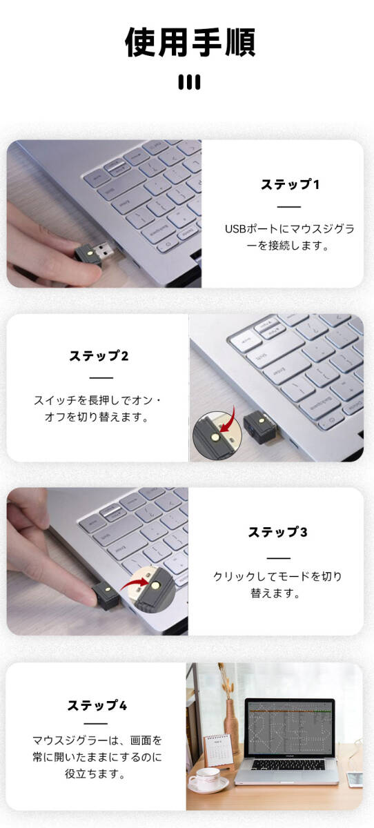 (B) マウスジグラー USB マウスムーバー 小型 スリープ防止 デバイス リモート テレワーク アンチ スクリーンセーバー ドライバ不要 收藏