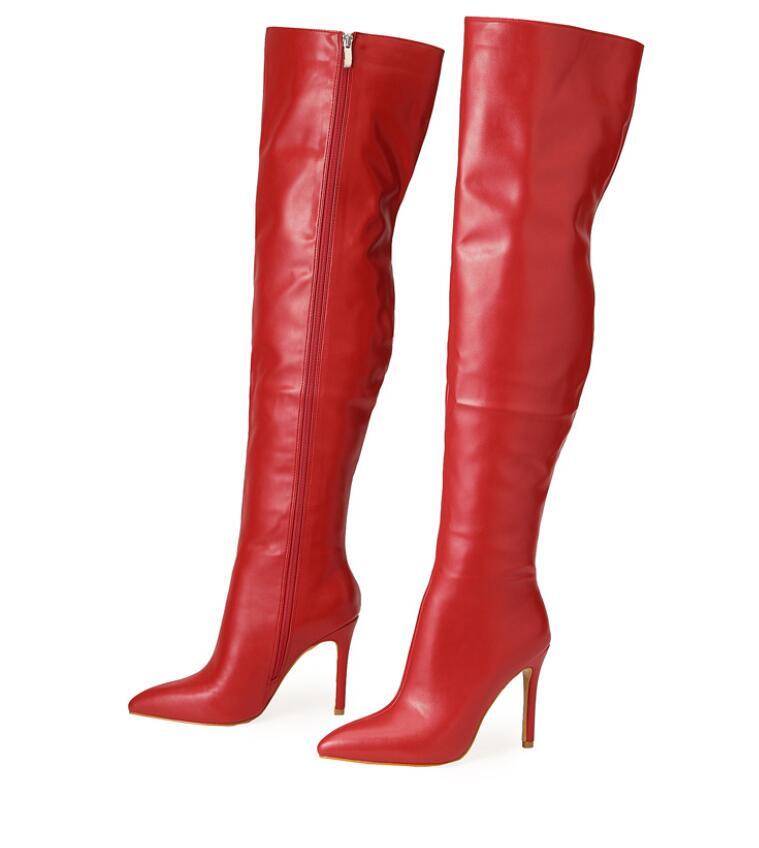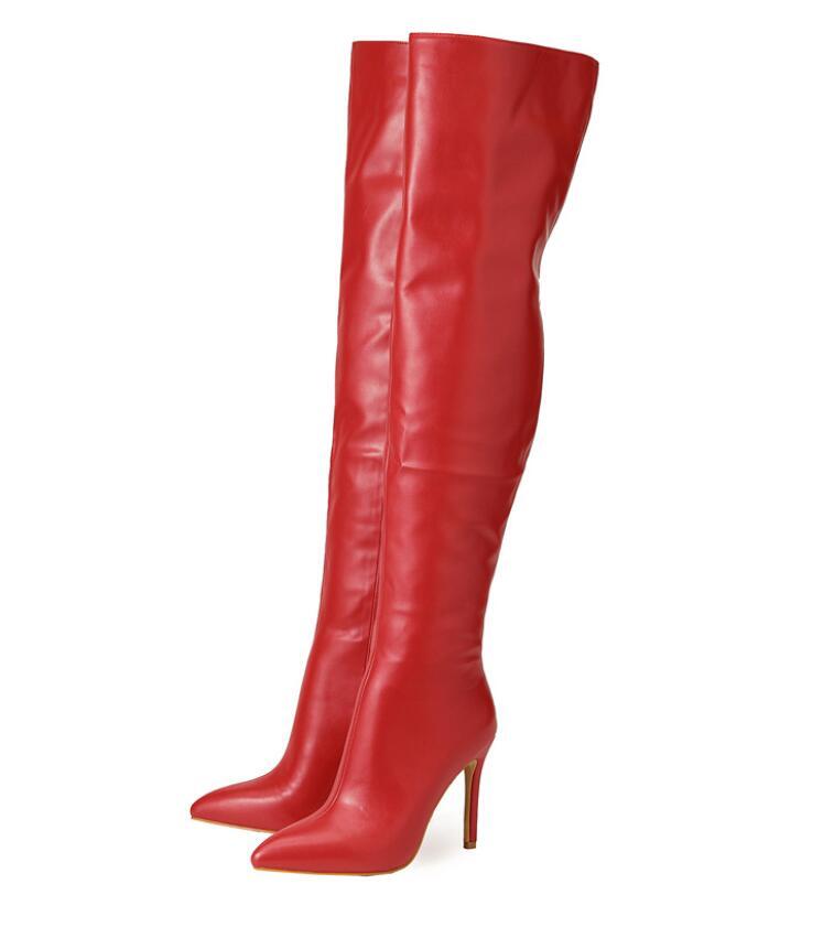 新入荷 ニーハイブーツ レディース ロングブーツ ピンヒール ハイヒール ポインテッドトゥ 美脚 履きやすい きれいめ 秋冬レッド 2色 收藏