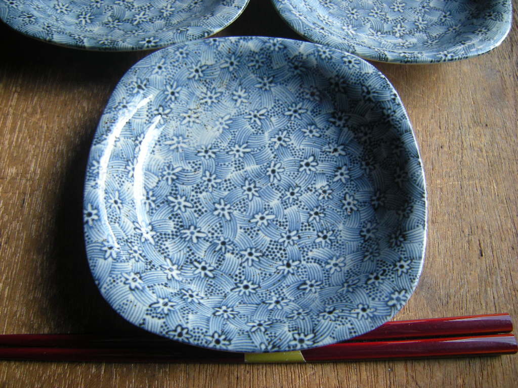 池◎美濃焼【新品・未使用】染付 網小花 四角皿 平皿 デザート皿 4.5寸(13.5㎝x2.5㎝)1枚から *お勧め*高級うつわ* 收藏
