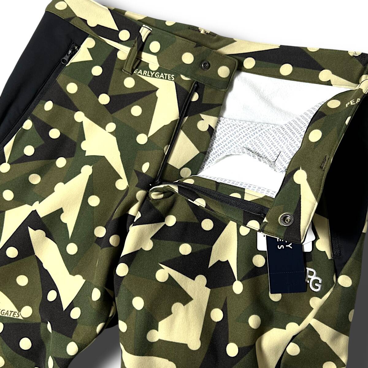 タイトル 新品 PEARLY GATES パーリーゲイツ 定価3.3万 防風 防寒 保温 裏起毛 迷彩 カモフラ カモドット柄 ストレッチ ラグウォーム ジョガーパンツ ゴルフウェア メンズ GOLF スポーツ レジャー 普段使い タウンユース カジュアル 春秋冬 181 オリーブ×カーキ×ブラック系