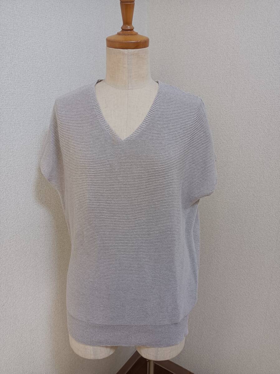 ★Kate ecru(ケイトエクリュ)の Vネックセーター(ラメ入り)フレンチスリーブ Mサイズ★ ◎Kate ecre(ケイトエクリュ) ・Vネックセーター ・色 グレイ系・・・ラメ入り ・サイズ Mサイズ ・フレンチスリーブ ・材質 綿 55% ポリエステル 25% 麻 20% ※自宅保管の中古のお品となります。 | ||||