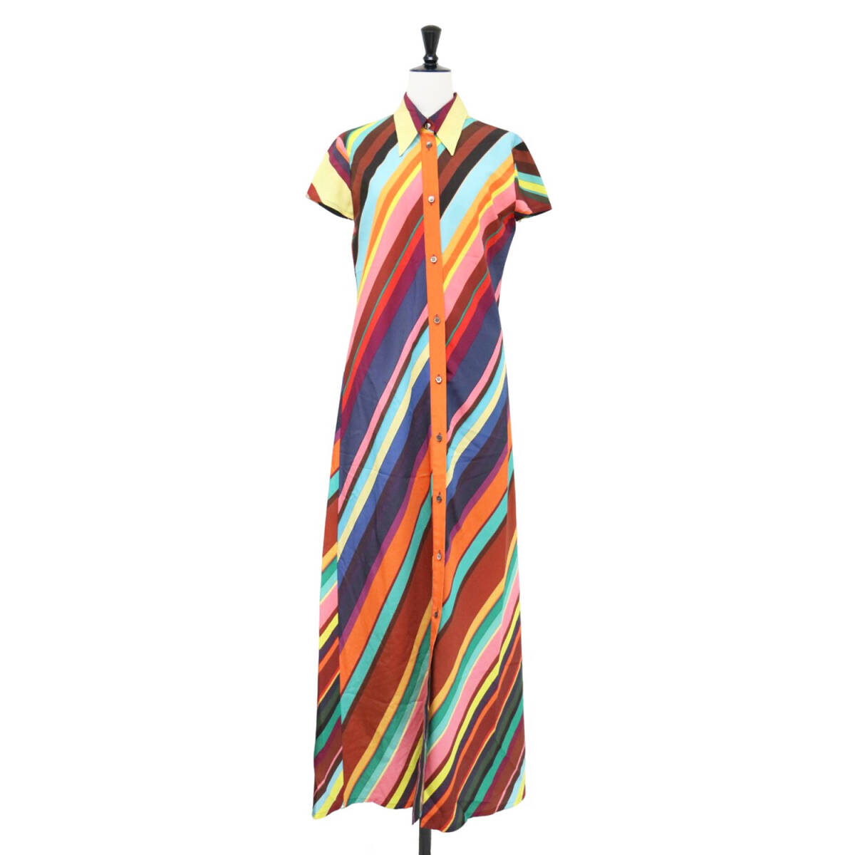 Paul Smith ポールスミス ワンピース オレンジ系 40(L) / シグネチャー ストライプ シャツワンピース / ロング マキシ / ヴィンテージ 收藏