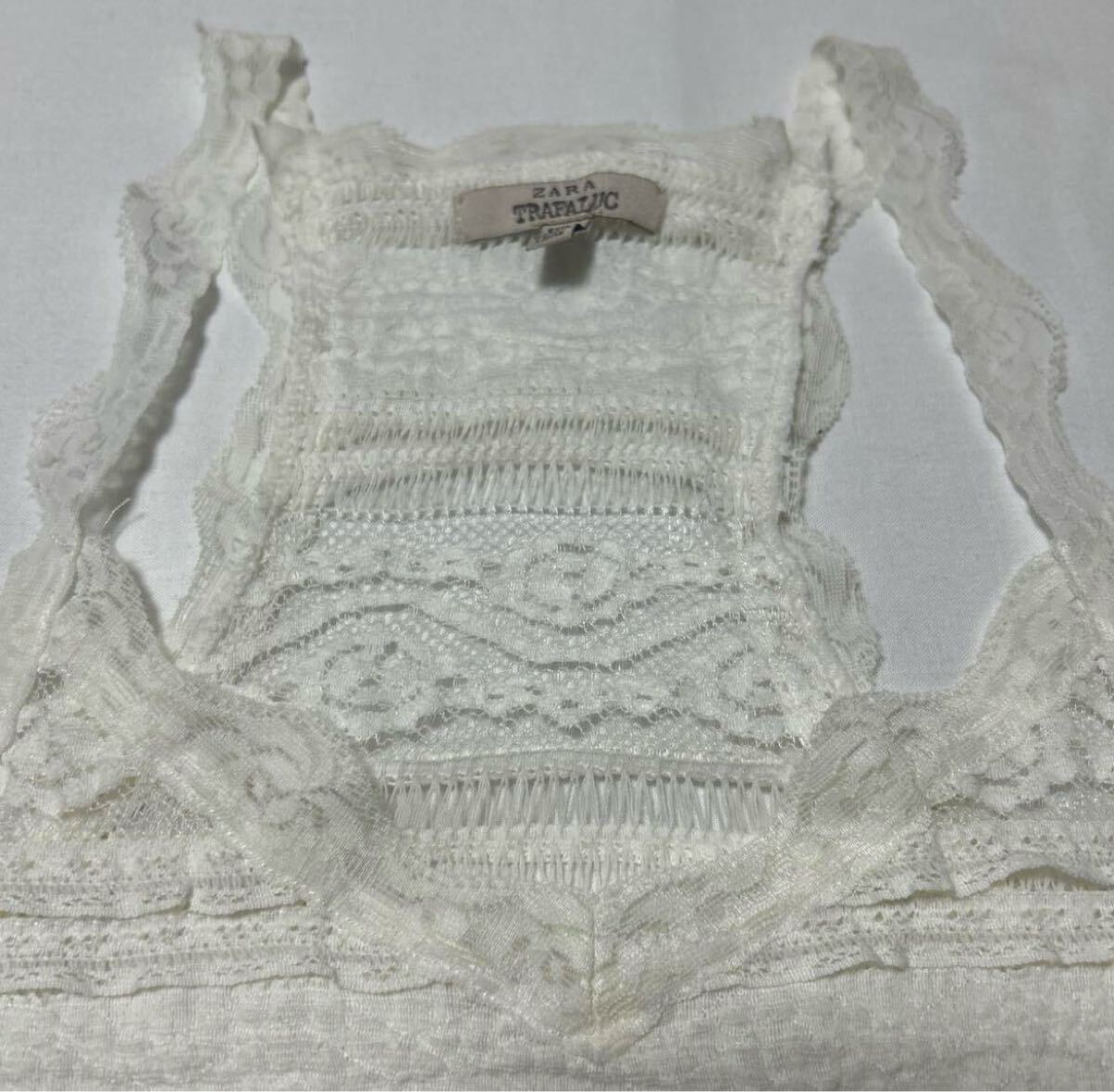 ZARA TRAFALUC シースルーレースキャミソールビスチェホワイト S 総レース 総柄 透け タンクトップ アメリカンスリーブ アメスリ 夏 旅行 收藏