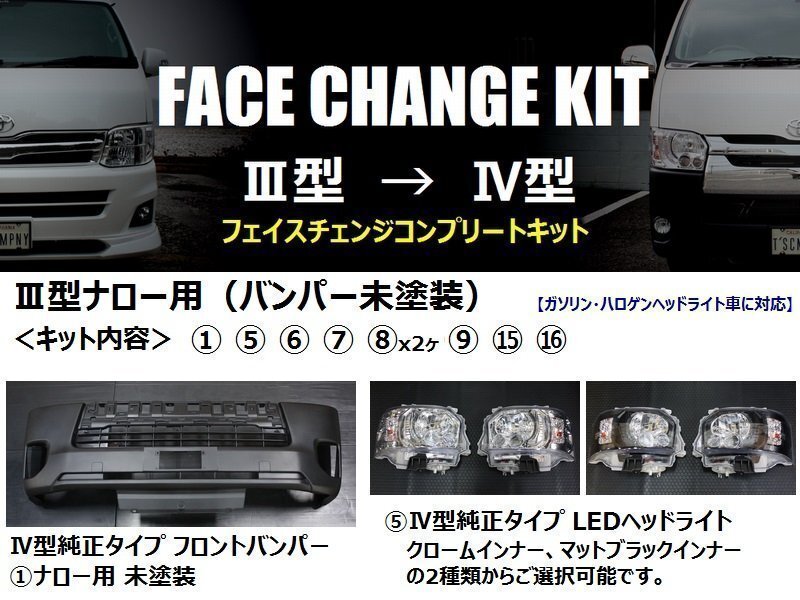 SALE ハイエース 4型 フェイスチェンジキット ナロー 3型用(バンパー 未塗装)200系(S-GL DX DXGLパッケージ) 收藏