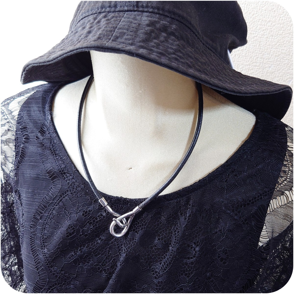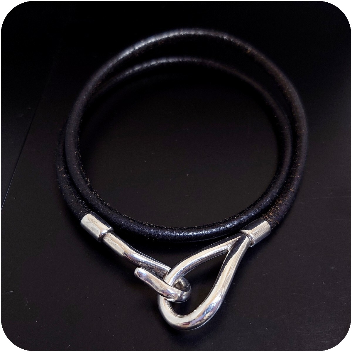 6334 SILVER925★訳あり★2連フックレザーブレスレット シルバー925 シンプル チョーカー アンクレット ヴィンテージ 丸紐レザーコード本革 收藏