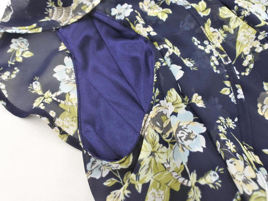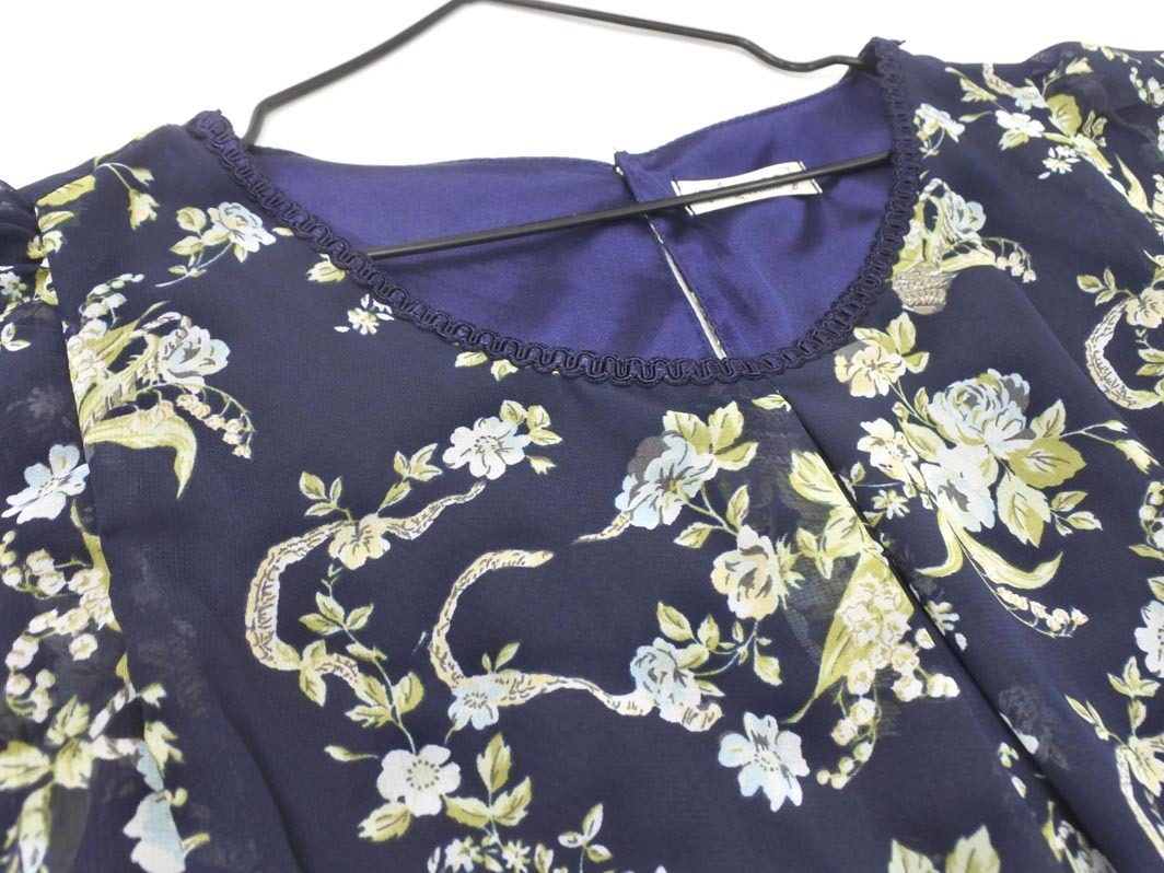 ネコポスOK axes femme アクシーズファム 花柄 フレアスリーブ ワンピース sizeM/紺 ■◆ ☆ fga9 レディース 收藏