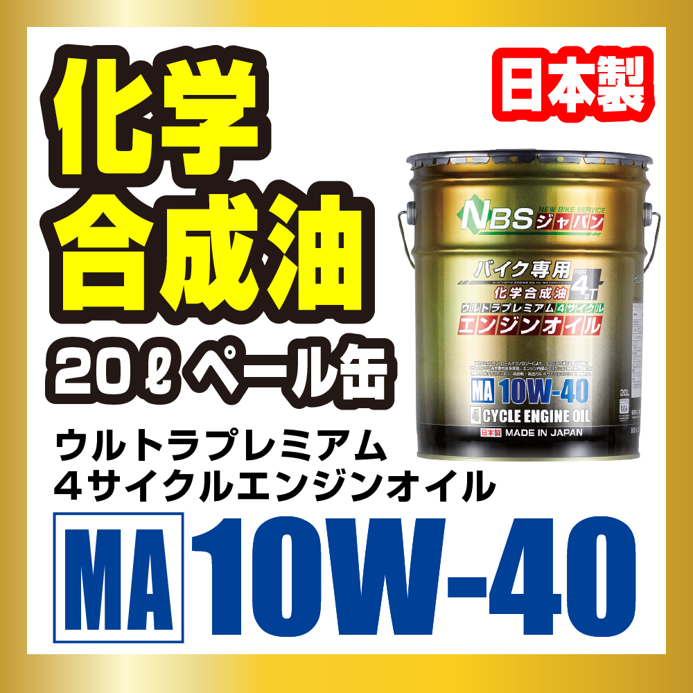 4サイクル ウルトラプレミアムエンジンオイル 10W-40 20L 化学合成 ペール缶 4サイクル オイル MA規格 日本製 バイクパーツセンター 收藏