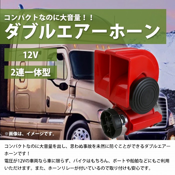 【送料無料】ダブル エアー ホーン コンプレッサー 一体型 12V 大音量 エア ツイン コンパクト ラッパ クラクション 車 バイク 船 ボート 收藏