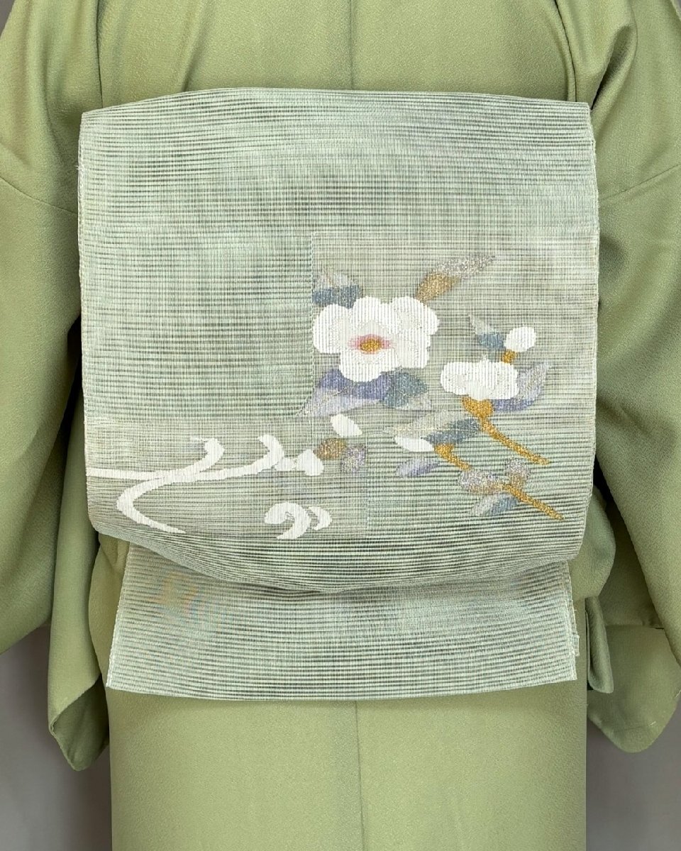 | M0784-01 河羅宇 お仕立て済みの正絹絽名古屋帯です。 正絹ですので、軽く締めやすく お色なども、お着物にも合わせやすいでしょう。 問屋様よりの在庫処分の帯です。 目立つ難は判りませんでしたがお求めの際はご了承の上にて、お買い上げお願い致します。 かなりお安くなっております。お早めに お求めくださいませ。 お色はモスグリ-ン色系地に白色・グレ-濃淡色・金色・銀色糸などにて花柄があります。 巻部分や手の部分は綴じてありません。◎ | ||||
