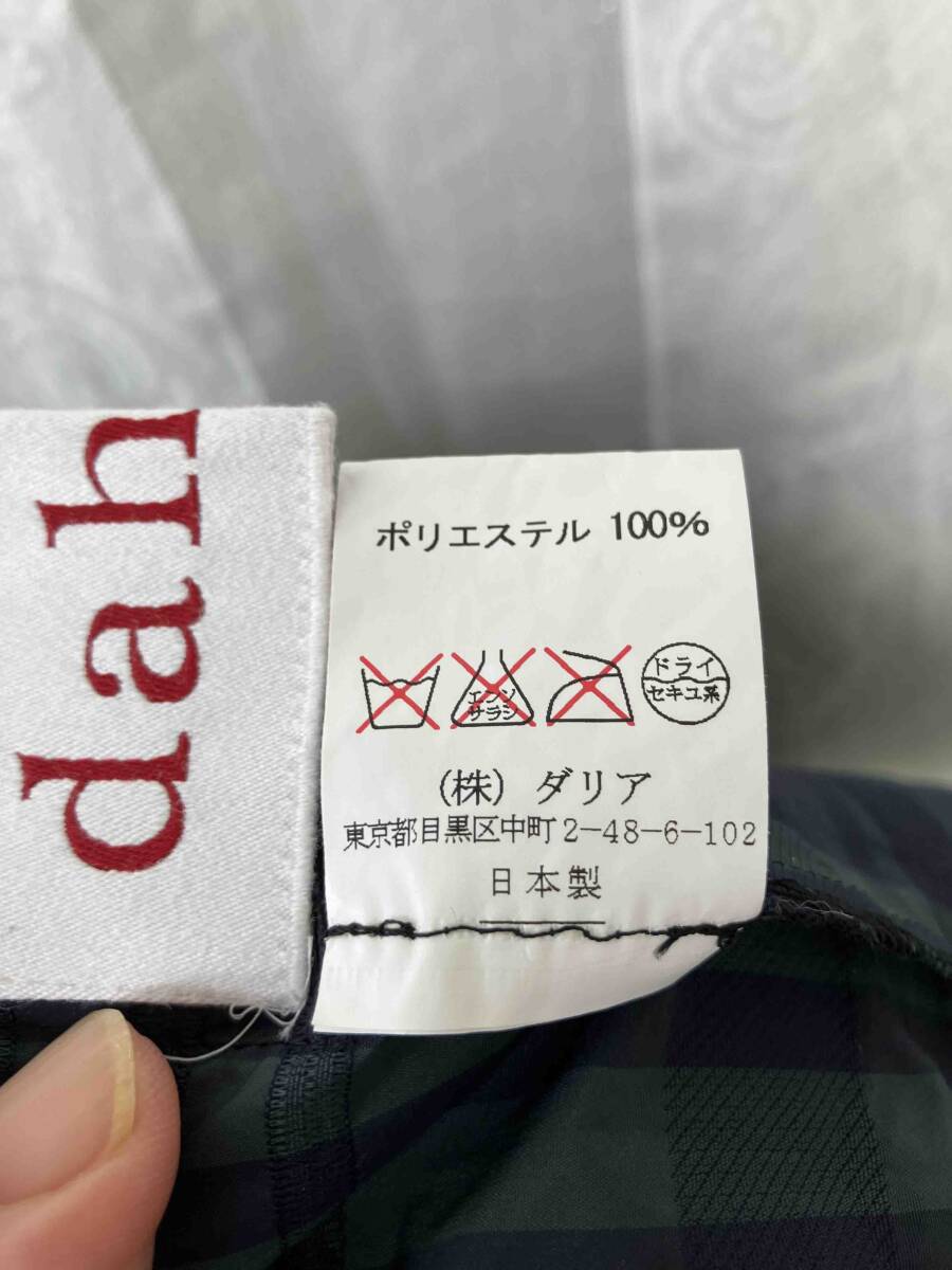 【色】 暗カーキ色・黒チェック柄 黒のゴムウエスト部分が切りっぱなし。