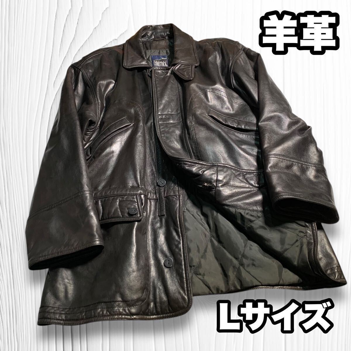 タカQ 羊革 Lサイズ 中綿入り カーコート レザー 本革 ロング レザージャケット 黒茶 レザーコート アクションプリーツ シンサレート 收藏