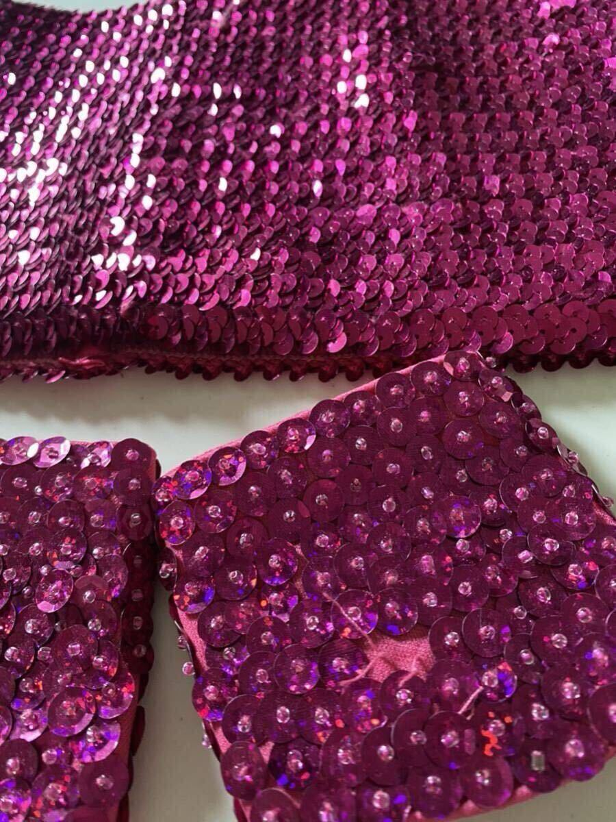 匿名配送 キッズ衣装 スパンコール ハギレ リメイク ピンク セットアップ 130 140 收藏