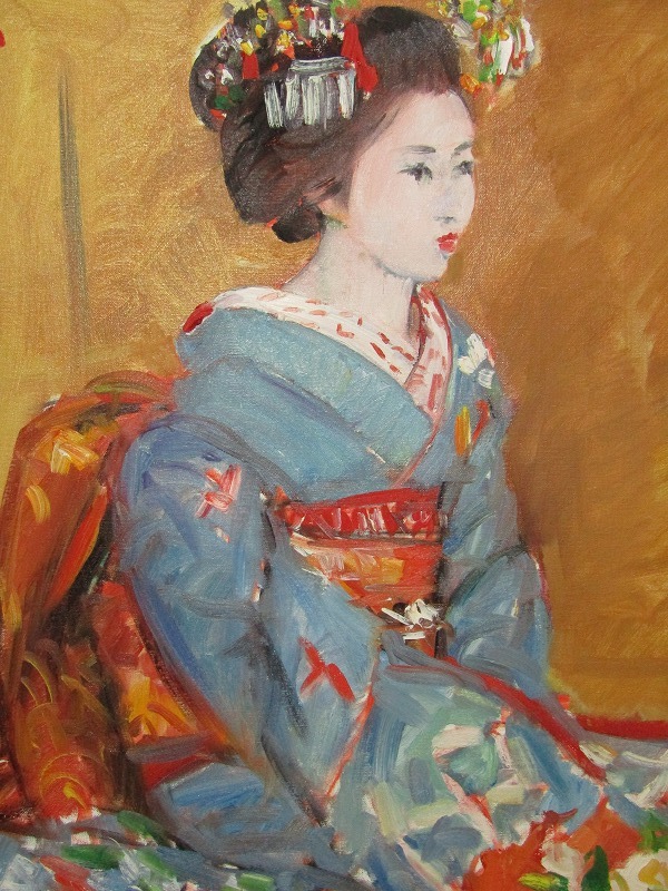 【真作】杉浦隆 油彩 F10号「先斗町 舞妓」額装 直筆サイン 宮城県出身 日展会友 光風会会員 美人画 ij16-8370[GGG] 收藏