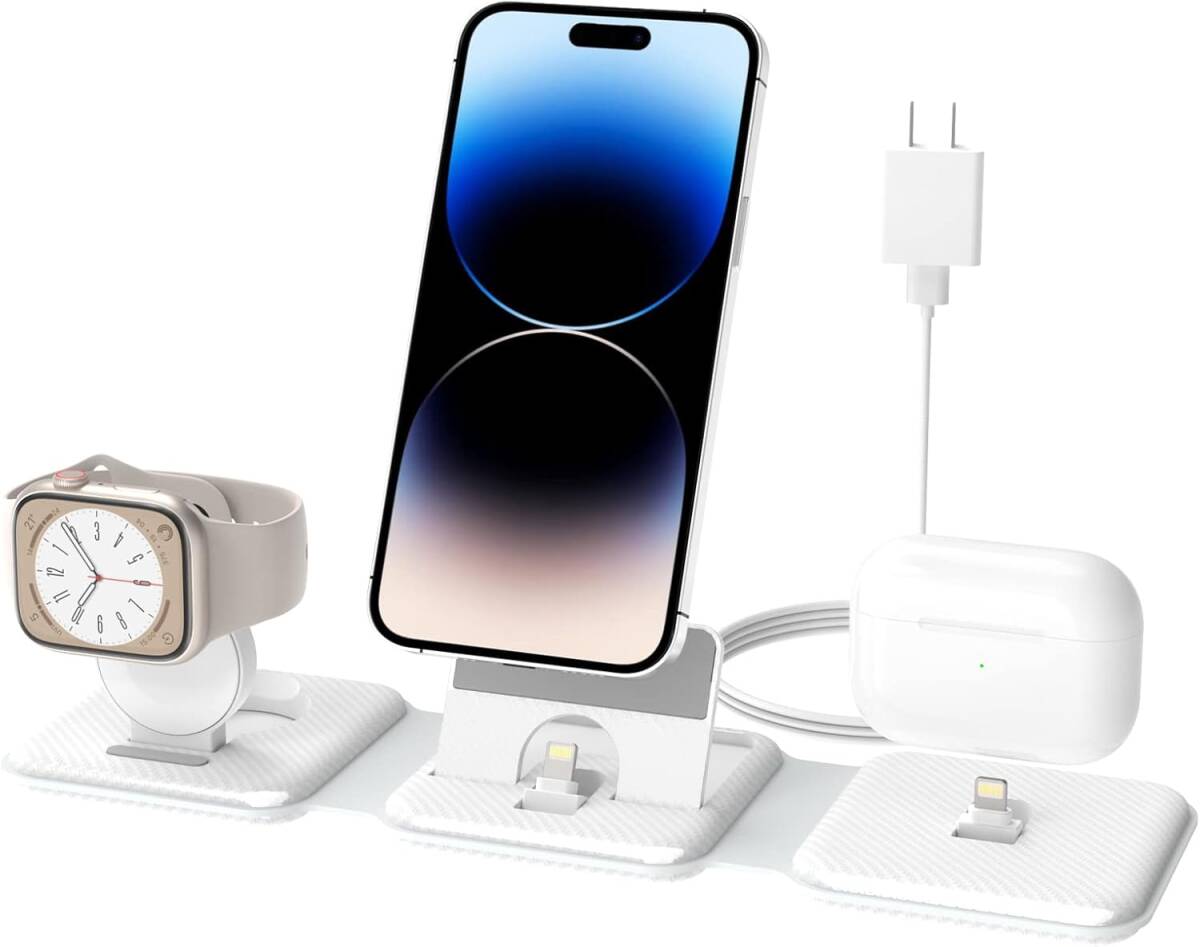 COCIVIVRE 3in1 充電スタンド アップルウォッチ 充電器 折りたたみ Compatible with iPhone14/13/12/11/X/8/7/6 apple watch ultra 2/Series 9/8/7/6/SE Airpods/2/3/Pro iphone アップルウォッチ 同時充電 置くだけ充電器 アダプター付属(ホワイト)