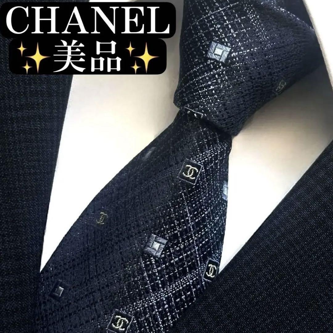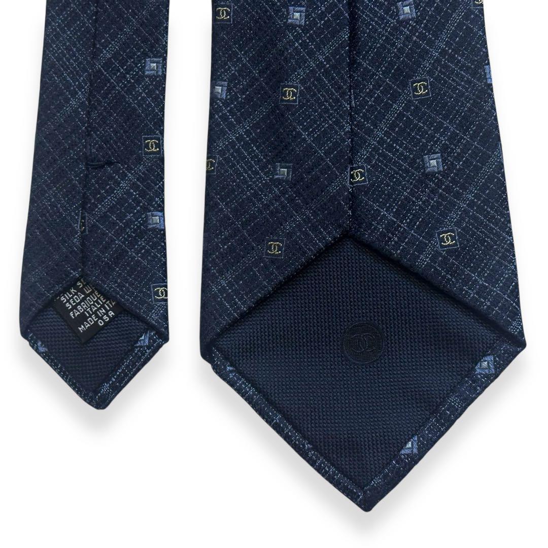 美品 CHANEL ネクタイ ココマーク ジャガード シャネル ネイビー高級 收藏