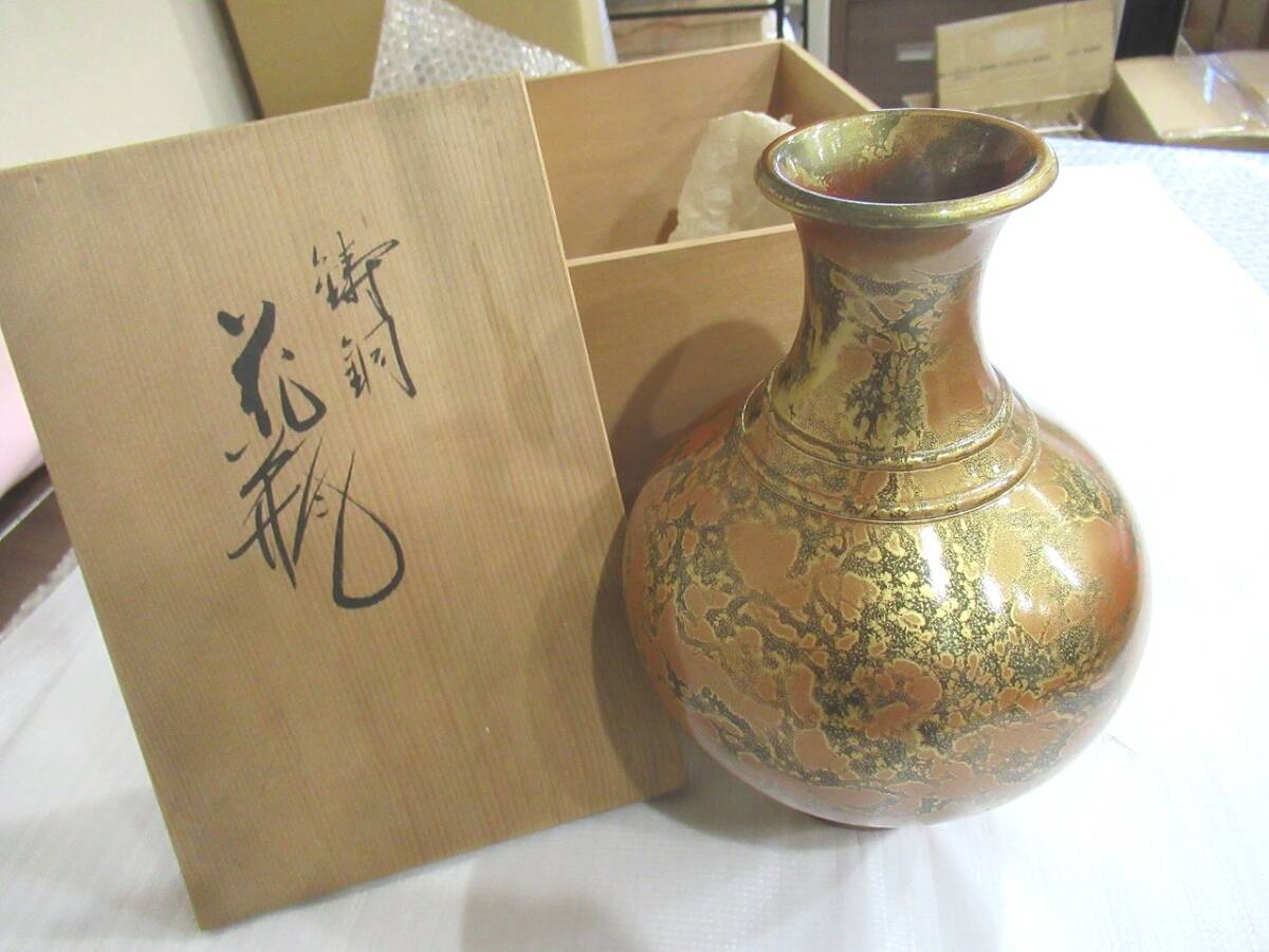 ☆ 鋳銅 花瓶 高さ約22㎝くらいです。 未使用 長期保管品です。 経年等は予めご了承ください。 箱は痛み汚れゴミの混入があります。 清掃は行いません、現状渡しになります。 同梱不可商品です。 |