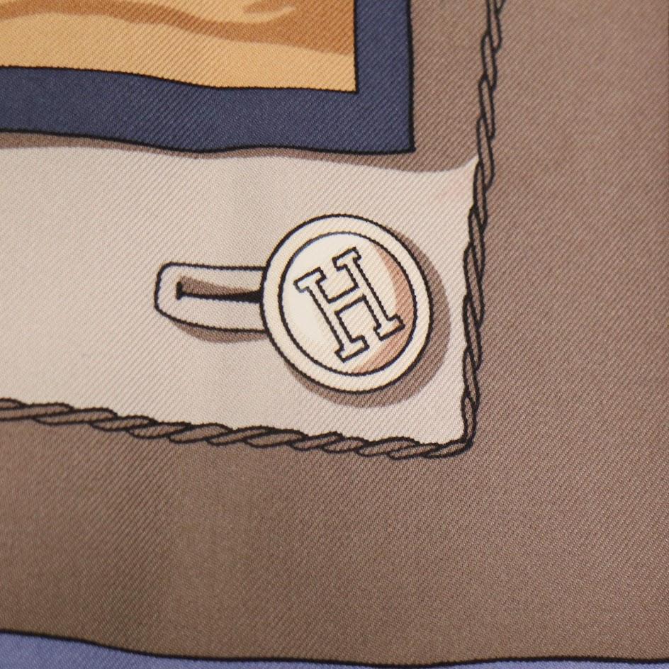 HERMES エルメス 大判スカーフ シルク100% Hカレ 90 馬車とハット エレガンス 装飾 小物 セレブ レディース ブルー系 総柄 人気 收藏