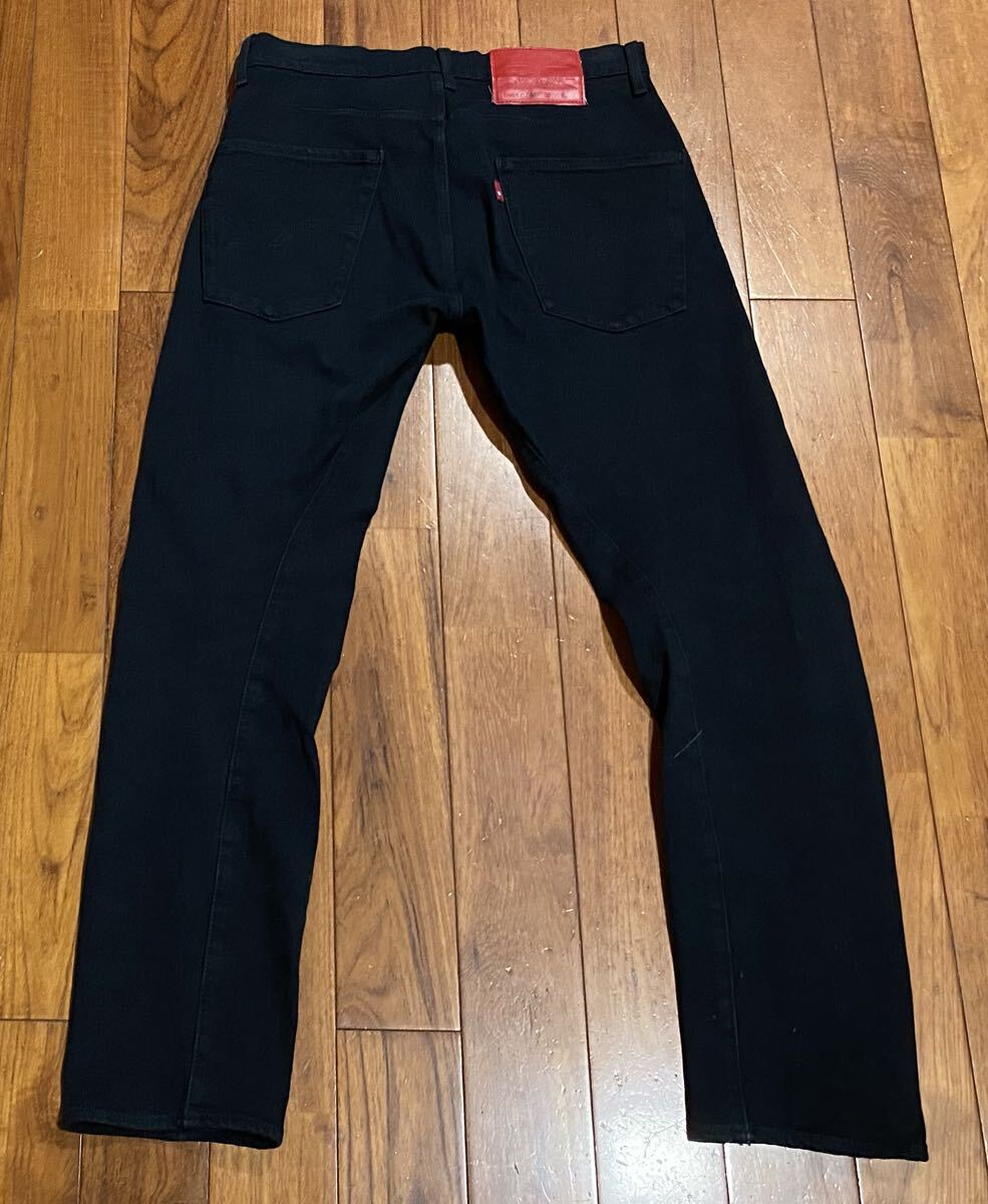 リーバイスエンジニアドジーンズのストレッチ レギュラーテーパードデニム、LEJ502 72775-0002 REGULAR TAPERです。色はブラックです。USEDですが状態は良いです(10段階中8程度)。生地はストレッチ入りで綿97%、ポリウレタン3%です。ボタンフライです。正規品です(中国製)。サイズはW28でウエストは重ねずに平置きで約73cm、ヒップ約94cm、股上約25cm、股下約71cm、股下15cmのふともも部分約45cm、裾まわり約33cm、重量約570gです。発送はゆうパケットポストになります。