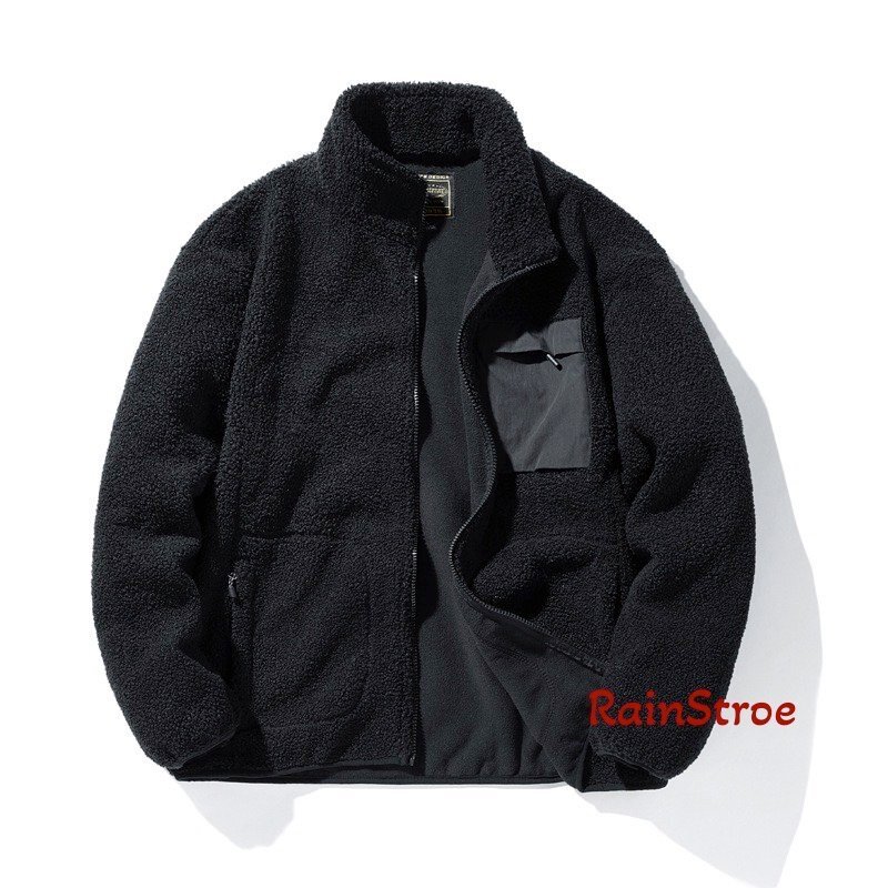 メンズボアジャケット 暖かい フリース 保温 アウター ブルゾン ブラック 2XLサイズ ライトアウター ジップジャケット マウンテンパーカー 收藏