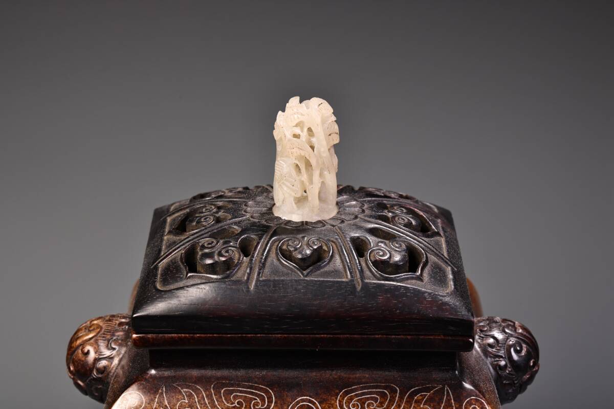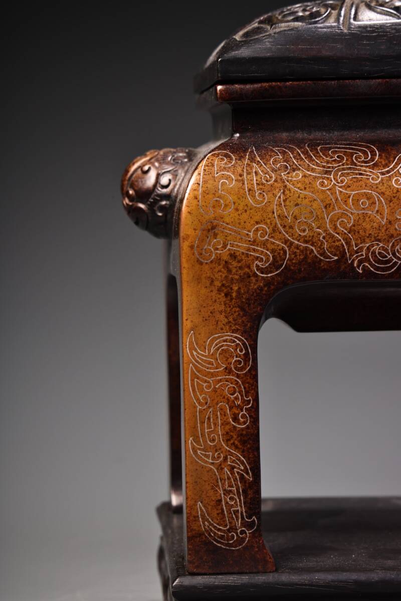 唐物 清時代 宮廷御用 ぎんせんくん香炉 紫檀木彫刻蓋台座 純銅 紫銅 香道具 銅製品 銅器 極細工 古美術品 時代物 中国古玩 骨董品 wn10.1 收藏