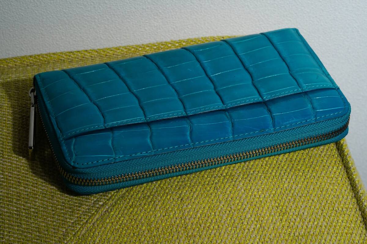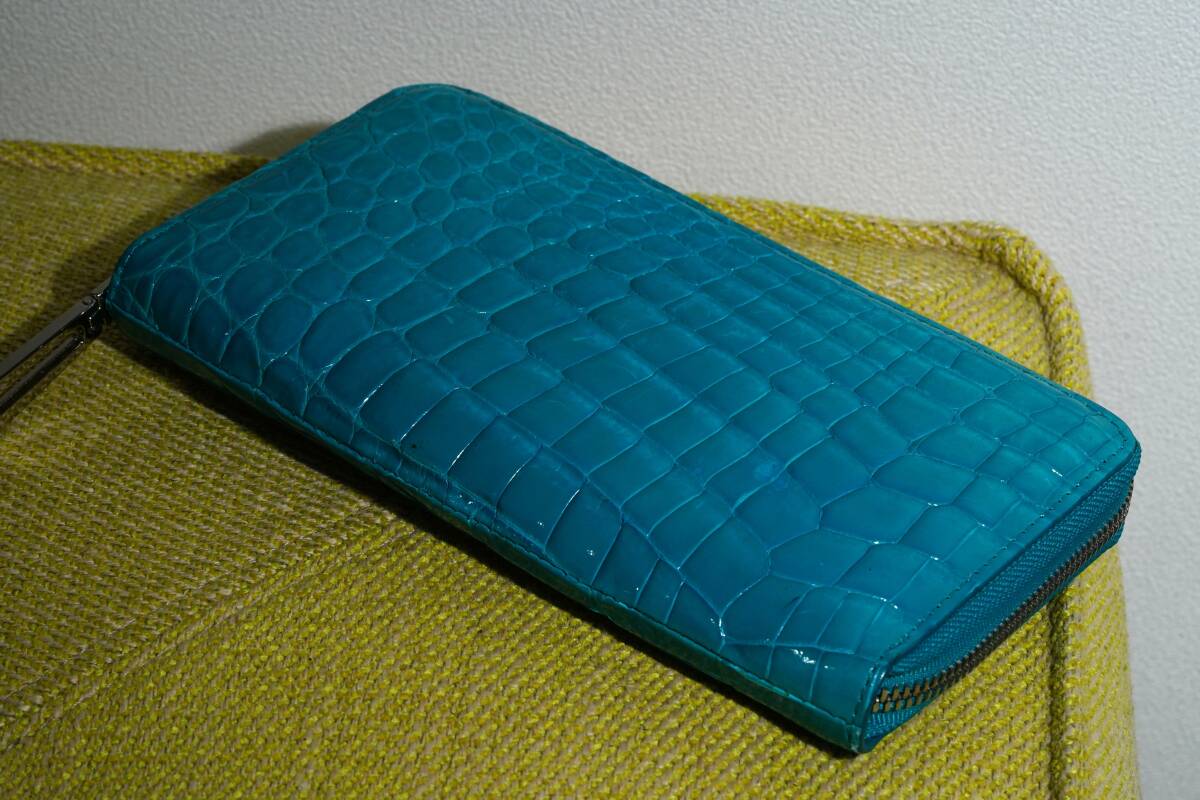 クロコダイル 財布 長財布 本物 ターコイズ クロコダイル本革 收藏