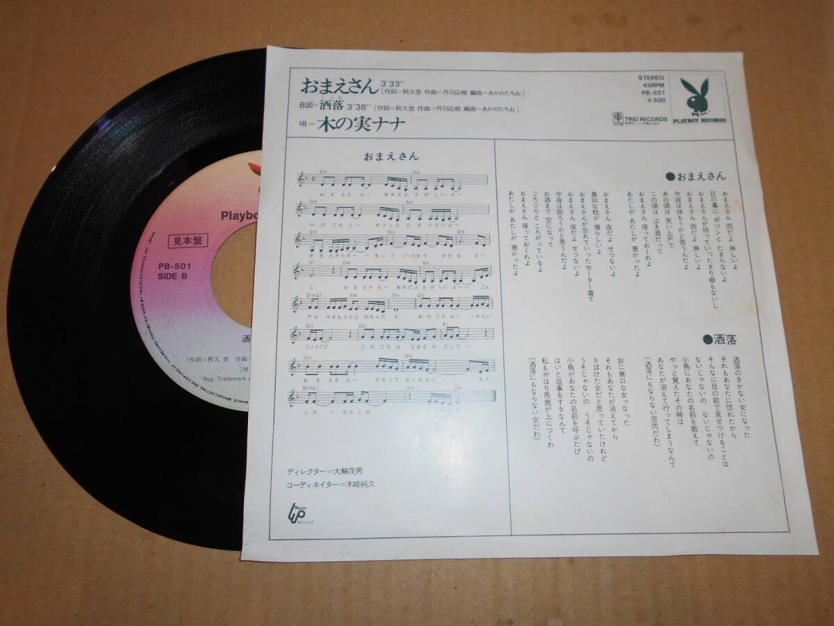 【EP3枚以上送料無料】 木の実ナナ / おまえさん / 洒落 見本盤 PLAYBOY RECORDS PB-501 阿久悠 丹羽応樹 あかのたちお