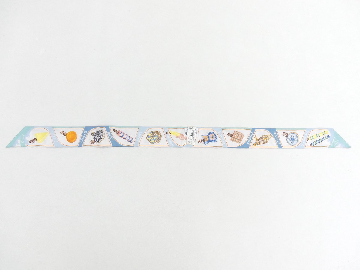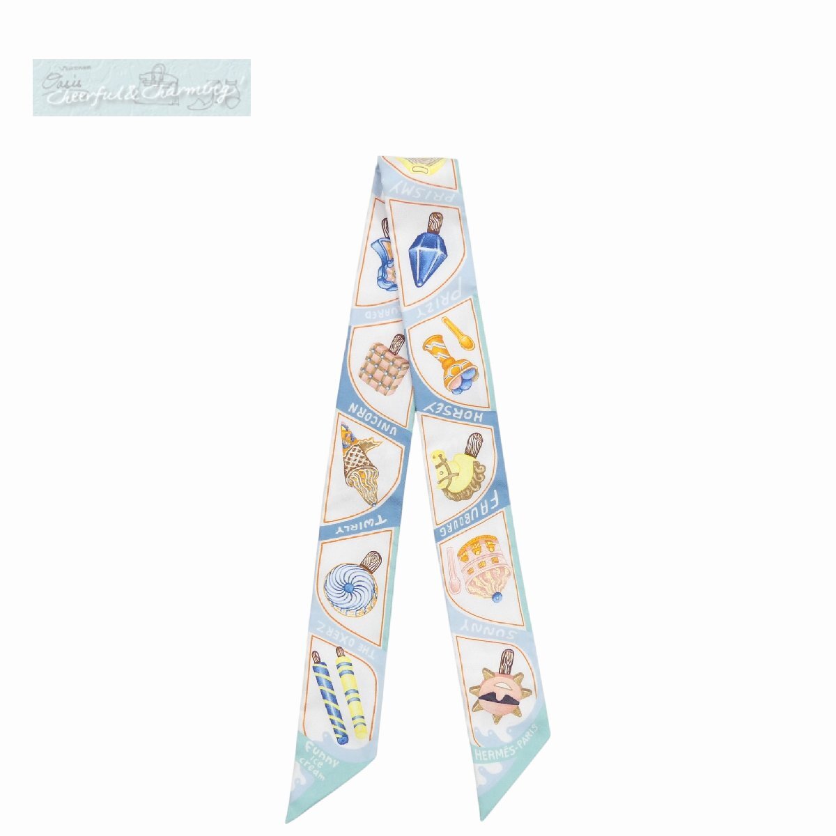未使用 HERMES ツイリー シルクスカーフ 『ファニーアイスクリーム』アクア/オレンジ/ジョーヌ 24SS 收藏