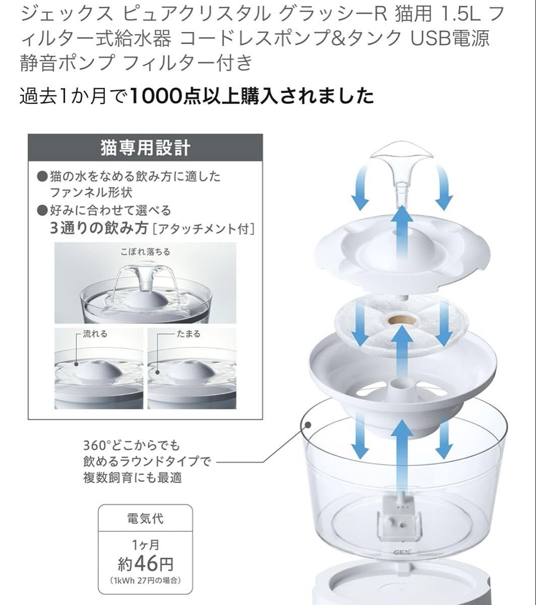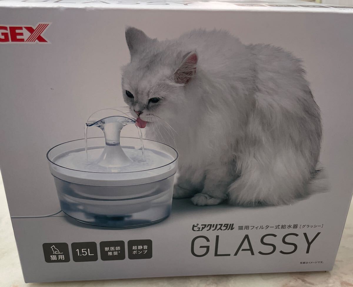 ペット用フィルター式給水機 ピュアクリスタル GEX グラッシー 猫用 フィルター式給水機 1.5L 活性炭フィルター お掃除3点セット付 收藏