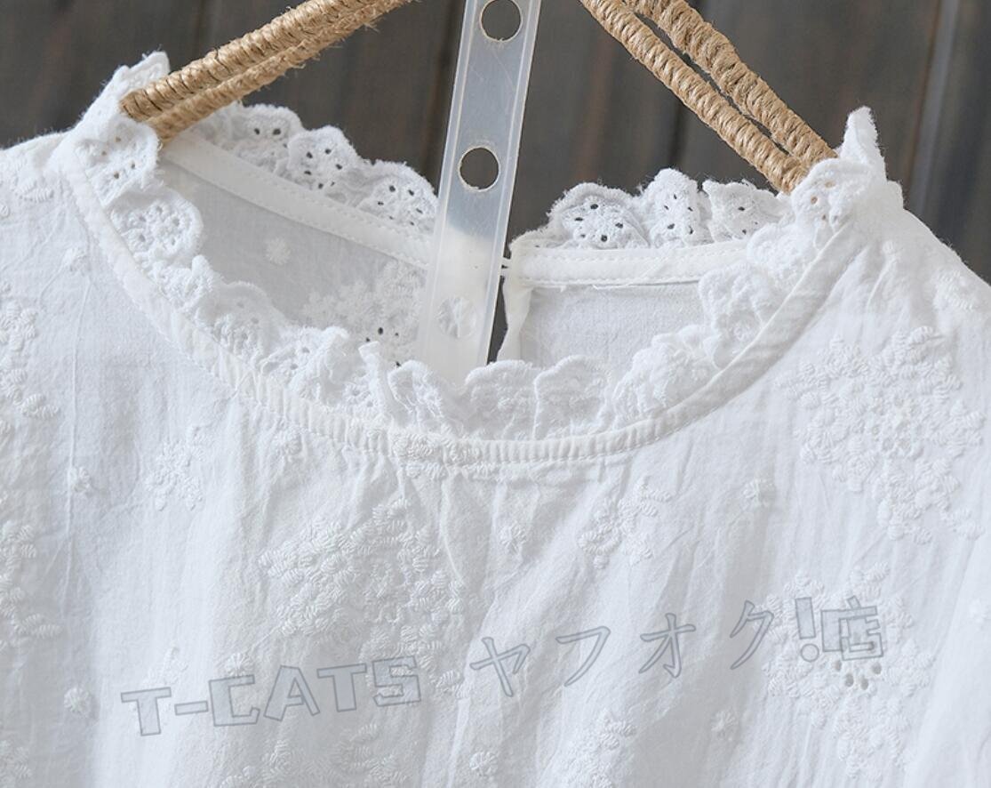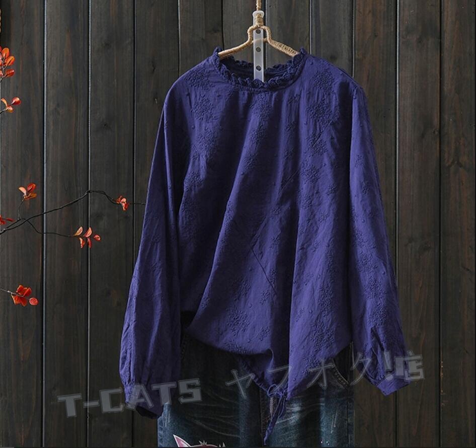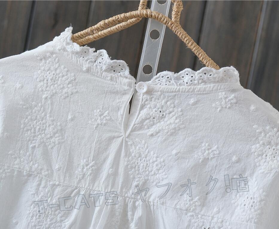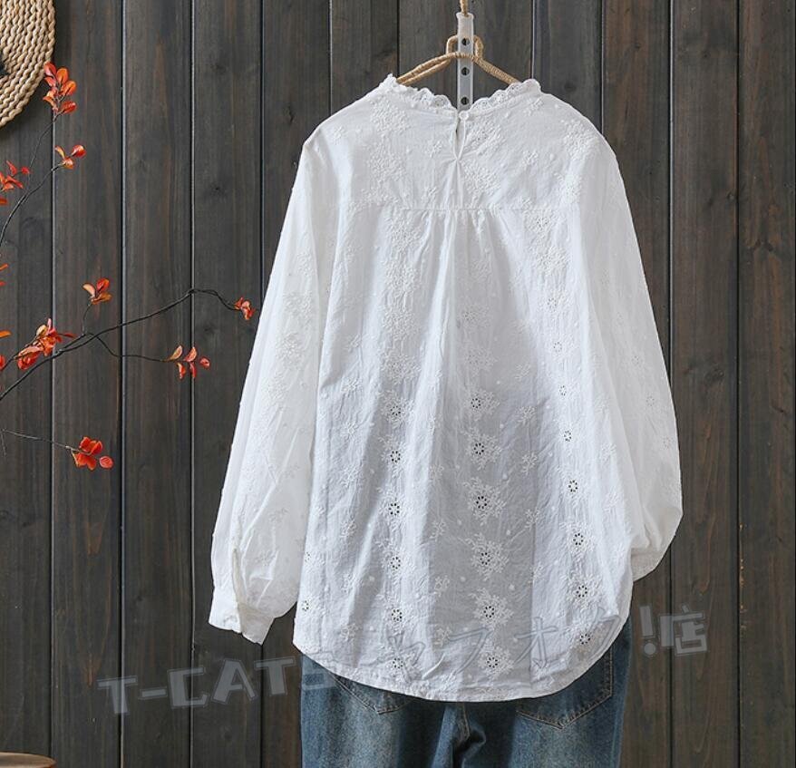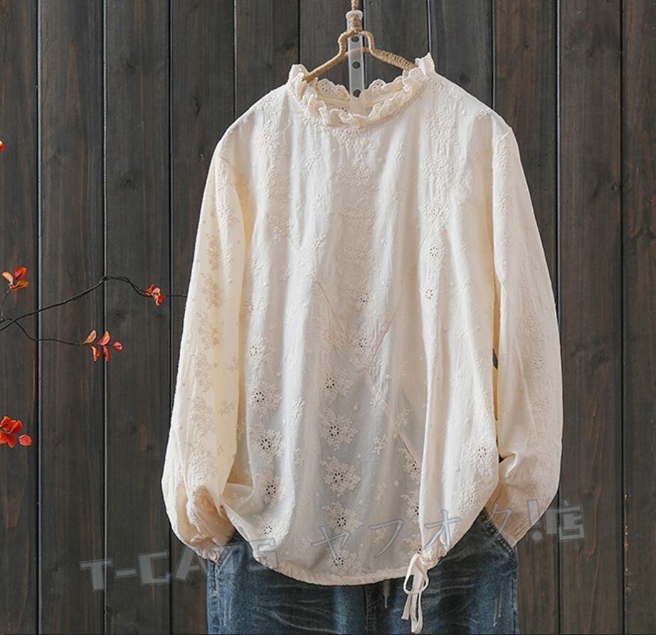 ☆新品上品 お花 刺繍 ブラウス 長袖 レディース チュニック シャツブラウス ゆったり レース襟 きれいめ エレガント 上品 杏 收藏