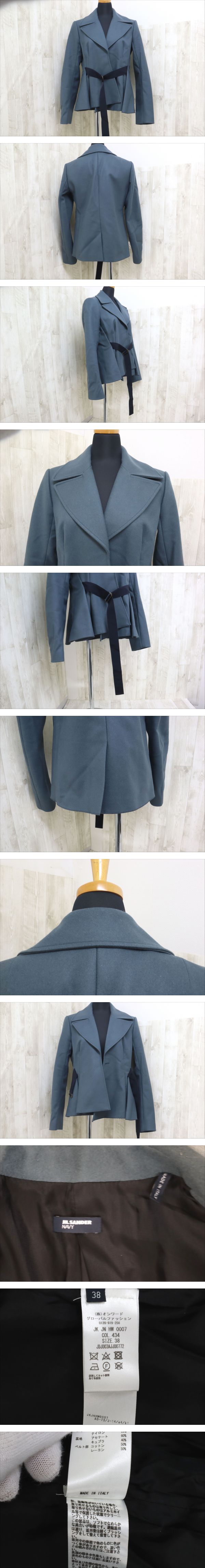 【ト萬】JIL SANDER NAVY ジルサンダー ウエスト 絞り ウールジャケット (38) グレー SA000RNP38 收藏