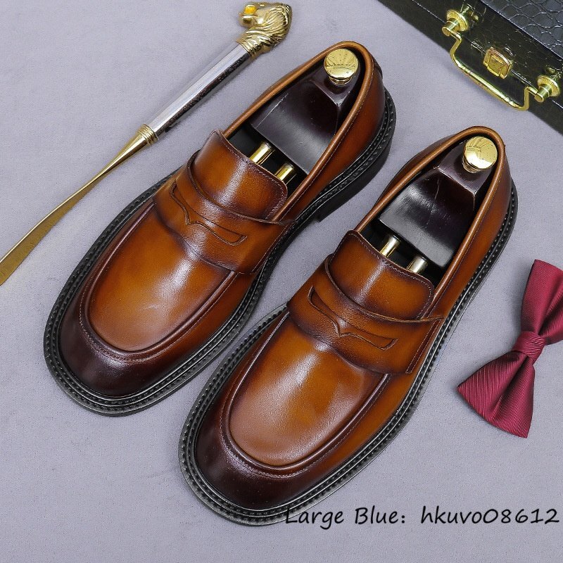 定価11万超■高級牛革 レザーシューズ 紳士靴 ローファー 本革 職人手作り ビジネスシューズ イギリス風 革靴 スリッポン ブラウン 26.5cm 收藏
