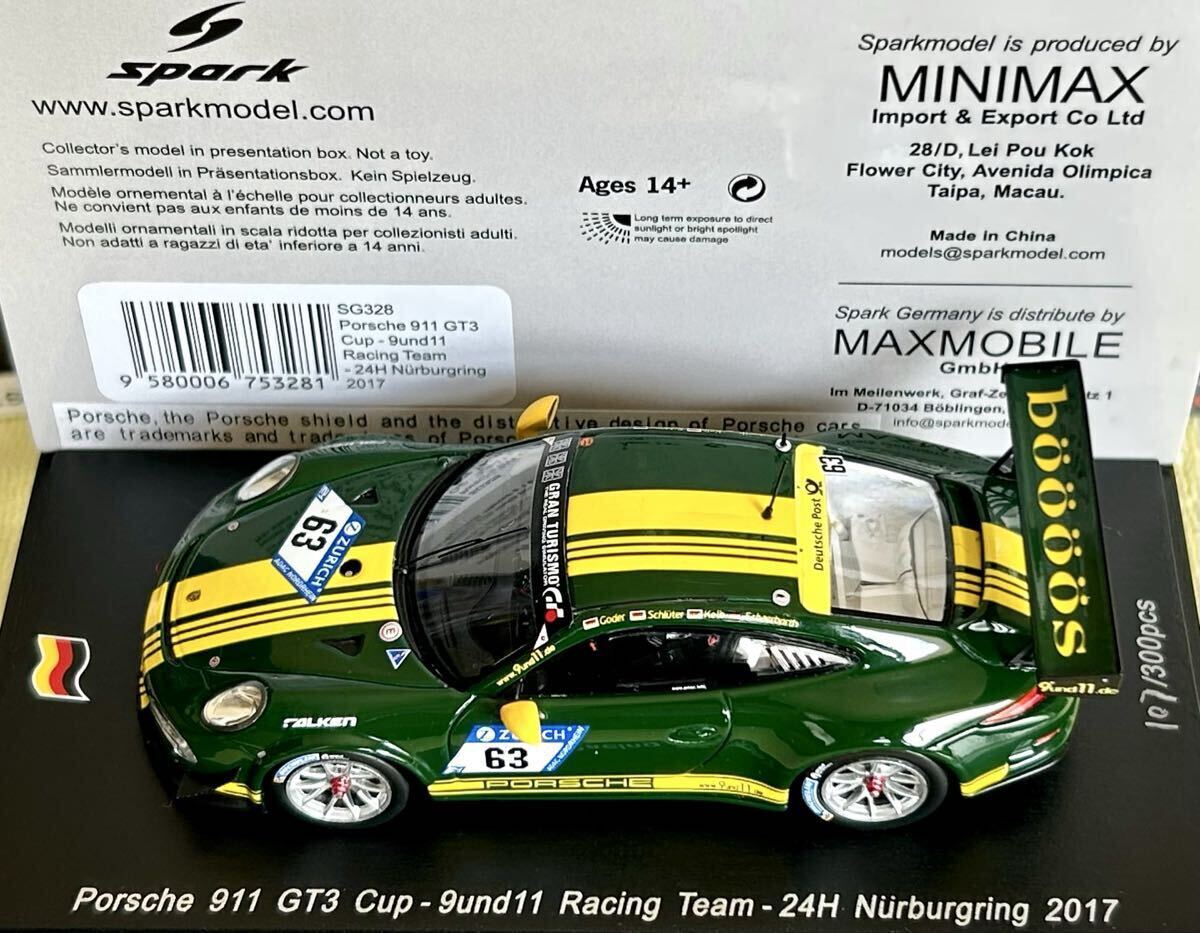 スパーク spark 1/43 Porsche 997 GT3 Cup - 9und11 Racing Team n°63・ 24 H Nurburgring 2017 [SG328] 107/300pcs 收藏