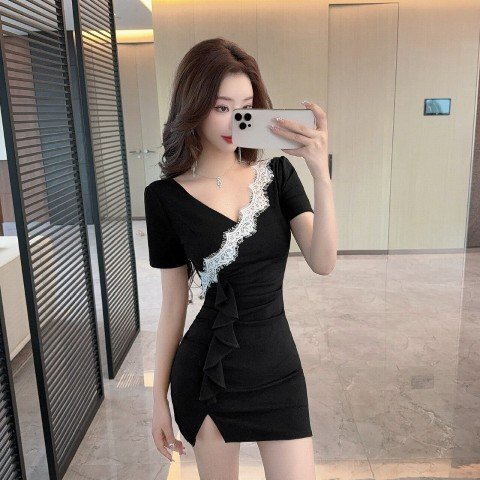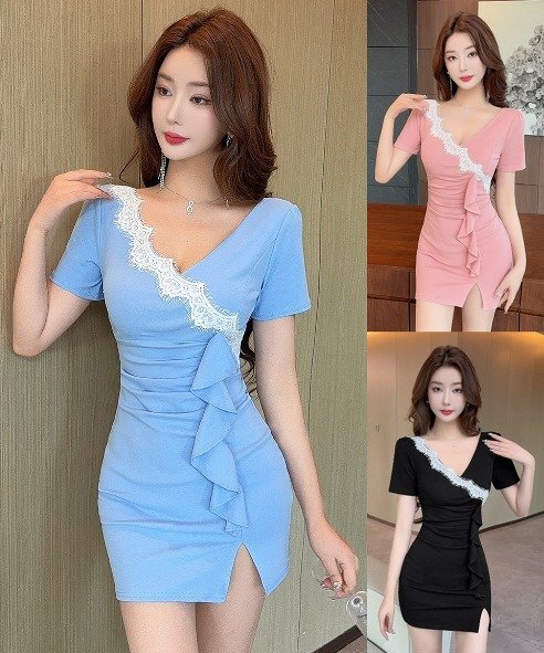 ミニワンピース ショートワンピース 半袖 タイト 細身 キャバクラドレス レース セクシー 二次会 披露宴 パーティー レディース L ピンク 收藏