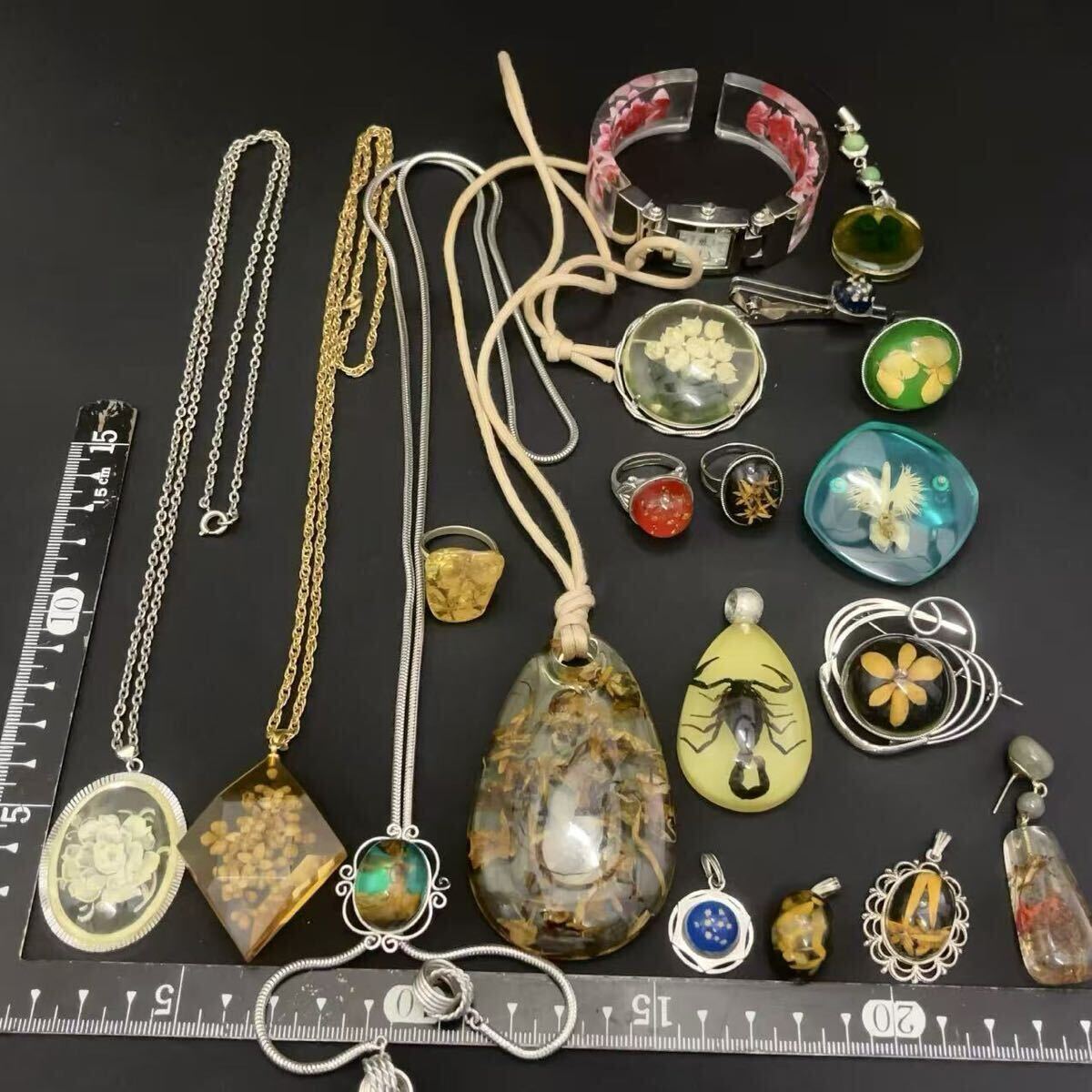 昭和レトロ 水中花 アクセサリーまとめ 大量セット ネックレス ブローチ 指輪 ペンダントトップ 腕時計等 まとめて 大量セット 收藏