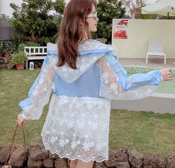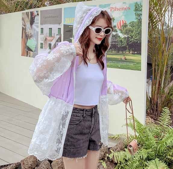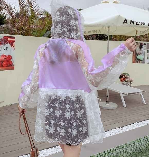 全3色 カーディガン 日焼け止め 切り替え バイカラー 体型カバー 着痩せ フード付き 【大きいサイズあり】 XL パープル 收藏