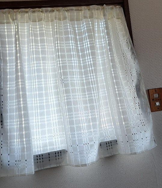 《 送料込み 》白いカフェカーテン*ハンドメイド*特殊加工レース調シアー生地*ナチュラルホワイト*模様がえ 收藏