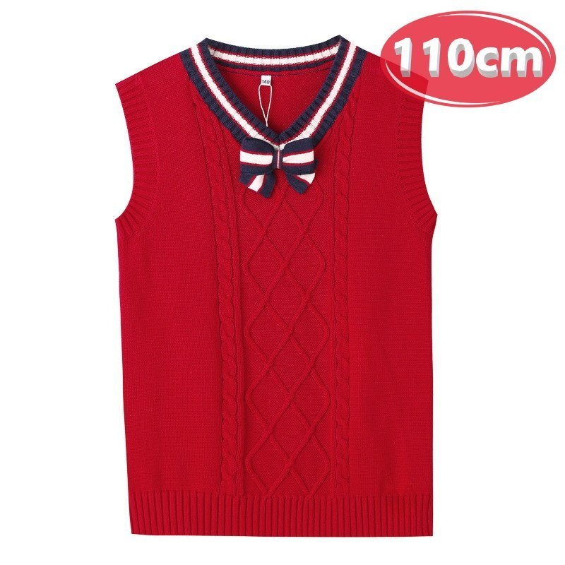 フォーマル 子供用 ニット ベスト 110cm 赤 リボン付き 入園 入学式 卒業式 セレモニー 冠婚葬祭 発表会 式典 收藏