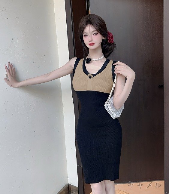 ミニワンピース ショートワンピース ノースリーブ 袖なし タイト 細身 シンプル カジュアル フリー ブラック 收藏