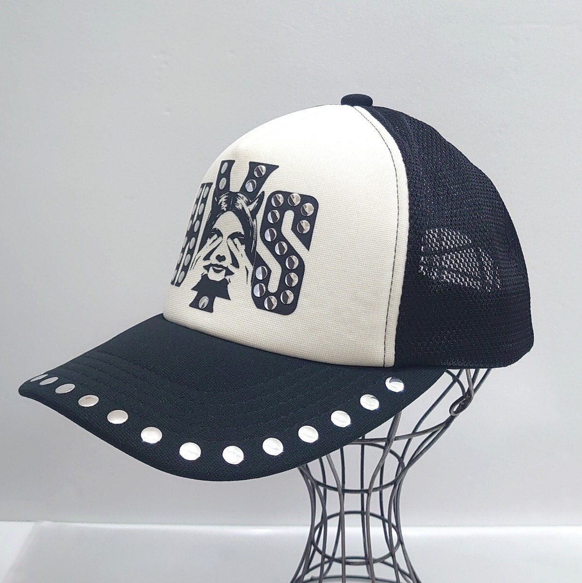 未使用 ヒスグラ ヒステリックグラマー HYSTERIC GLAMOUR SEE NO EVIL スタッズ メッシュ キャップ ガール CAP 帽子 メンズ ブラック 收藏
