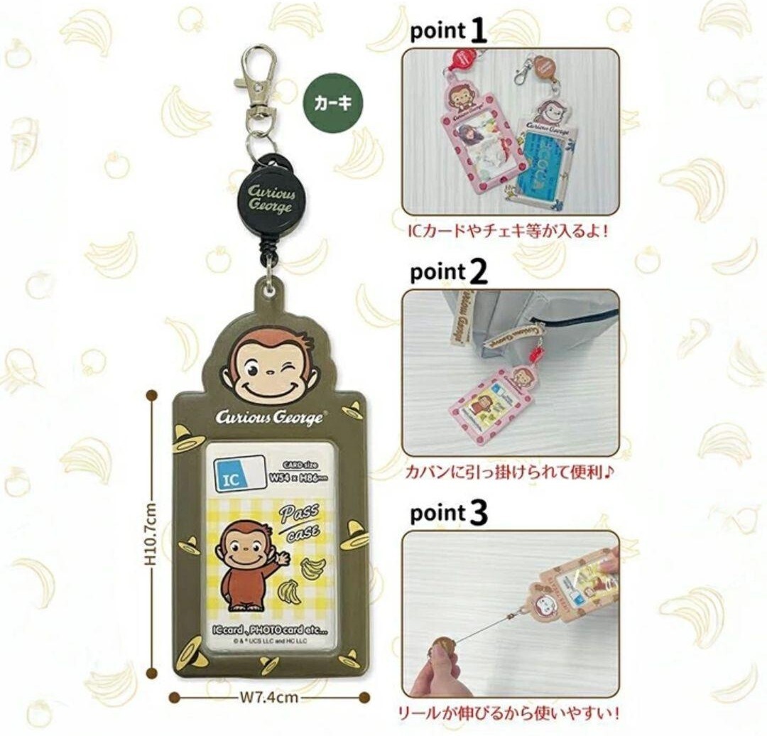 新品 カーキ おさるのジョージ リール付きパスケース  キーホルダー キュリアスジョージ ダイカット 定期入れ パスケース 收藏